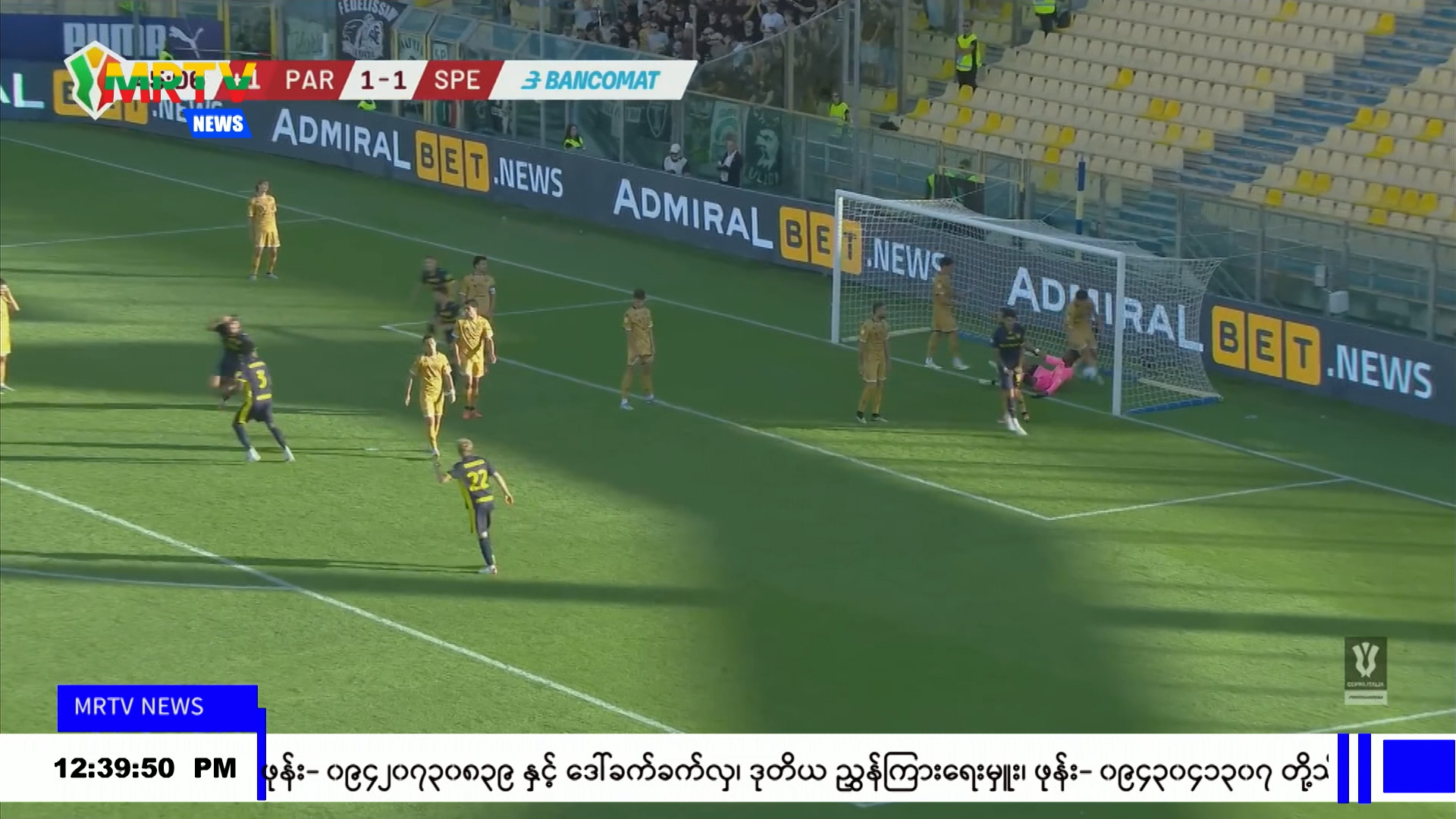 ကိုပါအီတာလီယာတွင် ပါးမားအသင်းက စပီဇီယာအသင်းကို ပယ်နယ်တီဖြင့် (၄)ဂိုး (၃)ဂိုးဖြင့် အနိုင်ရရှိခဲ့ Friday, September 26, 2025