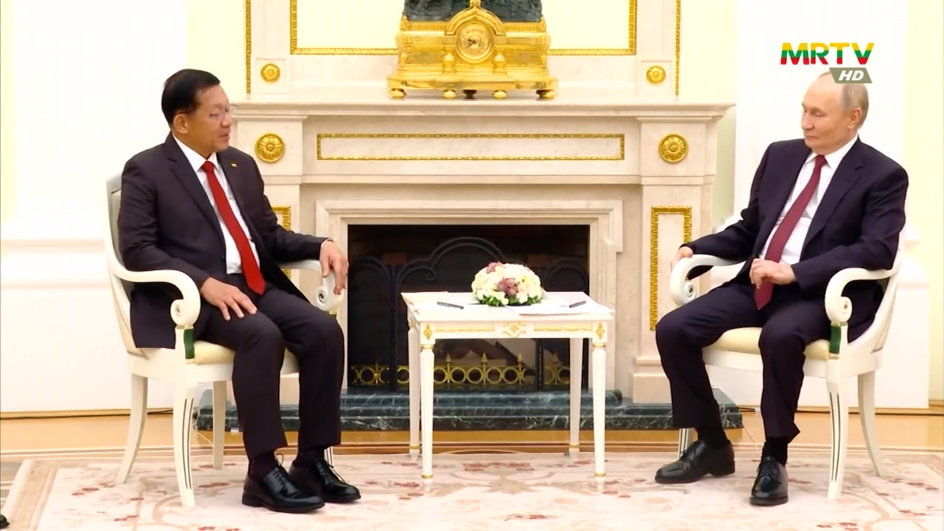 ပြည်ထောင်စုသမ္မတမြန်မာနိုင်ငံတော် ယာယီသမ္မတ နိုင်ငံတော်လုံခြုံရေးနှင့် အေးချမ်းသာယာရေးကော်မရှင်ဥက္ကဋ္ဌ ဗိုလ်ချုပ်မှူးကြီး မင်းအောင်လှိုင် ရုရှားဖက်ဒရေးရှင်းနိုင်ငံသမ္မတ Vladimir Vladimirovich Putin နှင့် တွေ့ဆုံဆွေးနွေး Friday, September 26, 2025