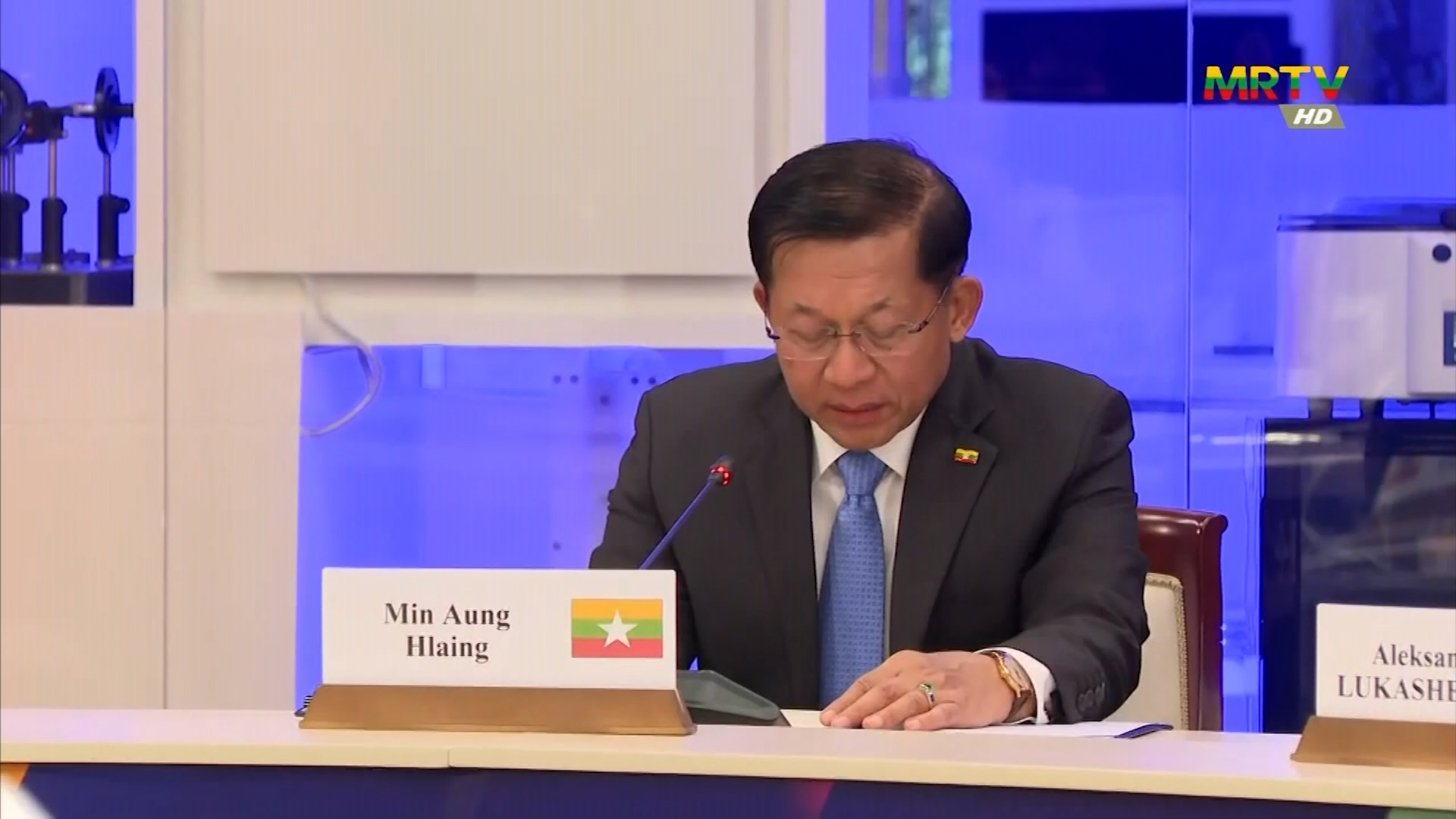 ပြည်ထောင်စုသမ္မတမြန်မာနိုင်ငံတော် ယာယီသမ္မတ နိုင်ငံတော်လုံခြုံရေးနှင့် အေးချမ်းသာယာရေးကော်မရှင်ဥက္ကဋ္ဌ ဗိုလ်ချုပ်မှူးကြီး မင်းအောင်လှိုင် ရုရှားဖက်ဒရေးရှင်းနိုင်ငံ မော်စကိုမြို့တွင့် ကျင်းပသည့် “ကမ္ဘာ့အဏုမြူသီတင်းပတ် ဖိုရမ်-၂၀၂၅ (World Atomic Week Forum 2025)” ၏ မျက်နှာစုံညီထိပ်သီး အစည်းအဝေးသို့ ပါဝင်တက်ရောက်
