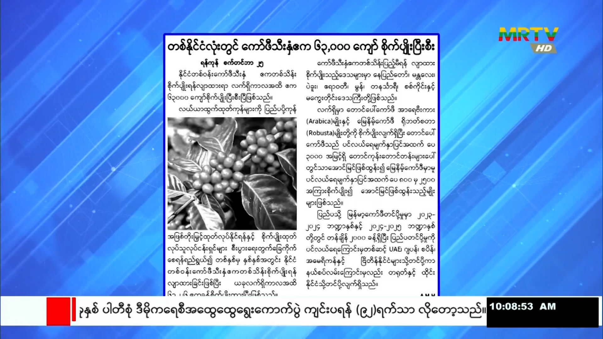 တစ်နိုင်ငံလုံးတွင် ကော်ဖီသီးနှံဧက (၆၃၀၀၀)ကျော် စိုက်ပျိုးပြီးစီး