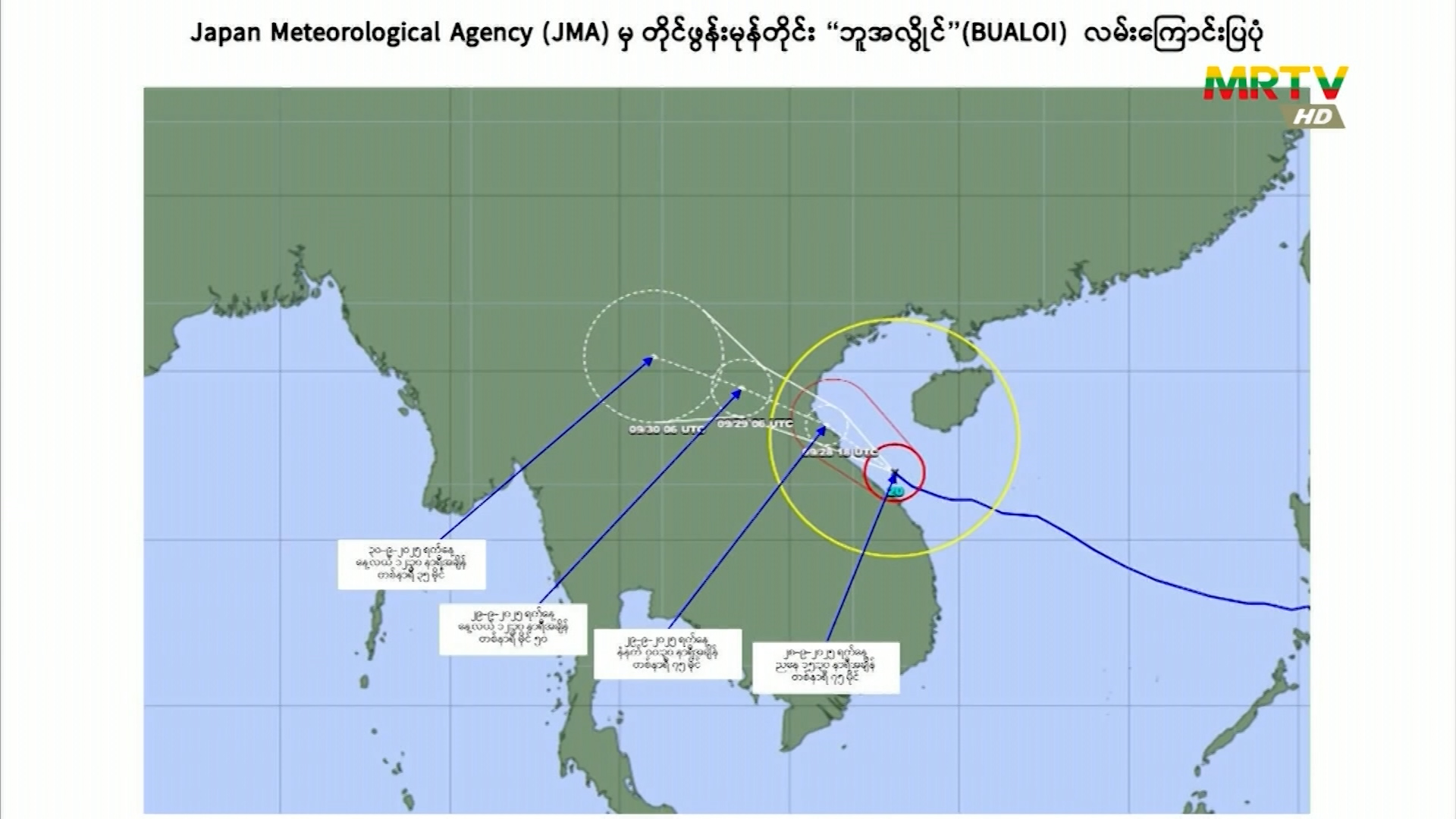 မိုးလေဝသနှင့် ဇလဗေဒညွှန်ကြားမှုဦးစီးဌာနမှ တိုင်ဖွန်းမုန်တိုင်း “ဘူအလွိုင်” အခြေအနေသတင်း အမှတ်စဉ်(၇/၂၀၂၅)အား ထုတ်ပြန် (ညနေ ၄ နာရီအချိန် ထုတ်ပြန်ချက်)၊ အထူးမိုးလေဝသ သတင်း ထုတ်ပြန် (ဘင်္ဂလားပင်လယ်အော်အခြေအနေ သတင်း ထုတ်ပြန်) Sunday, September 28, 2025