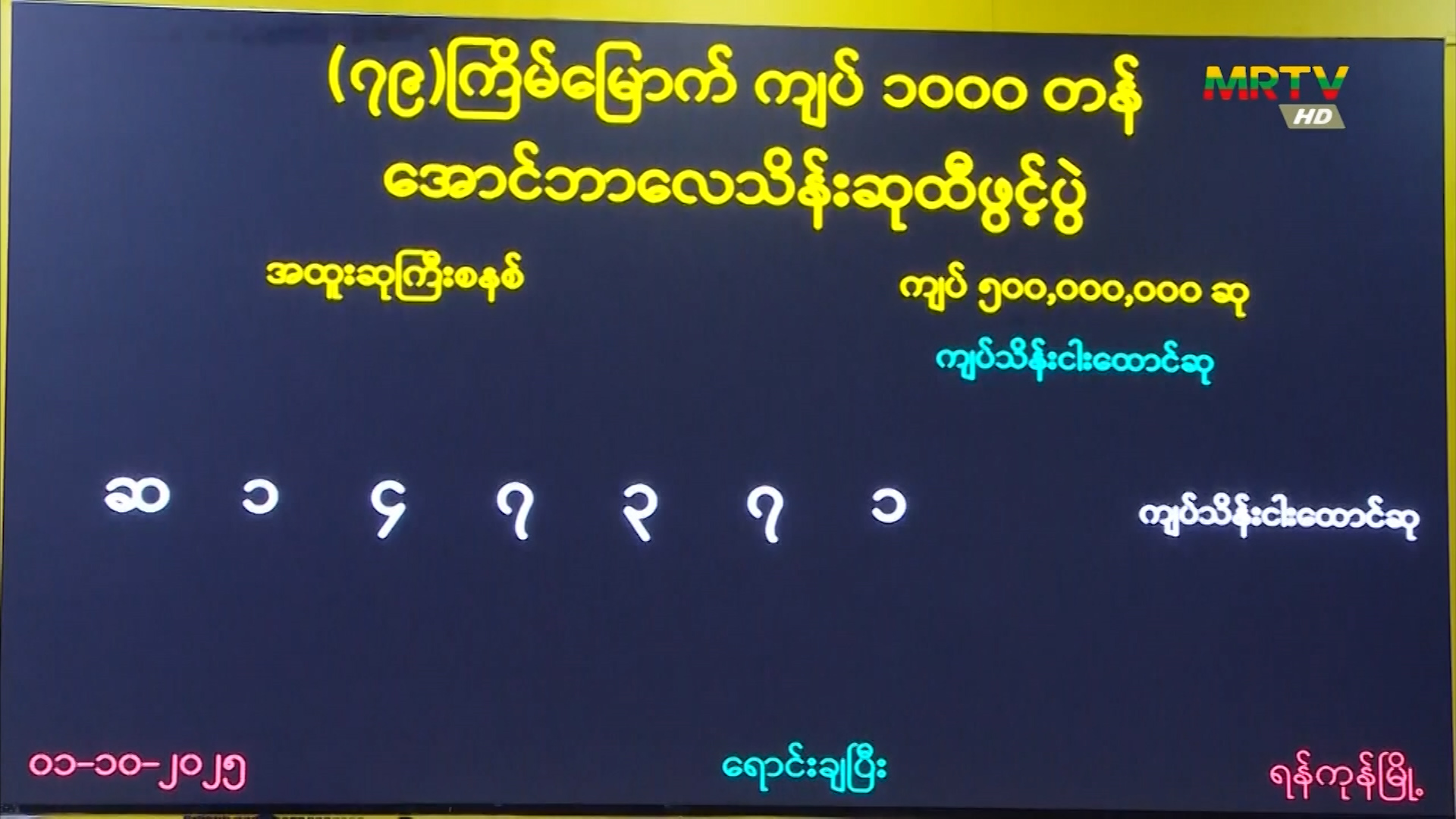 ပြည်တွင်းအခွန်များဦးစီးဌာန၊ အောင်ဘာလေသိန်းဆုဌာနခွဲမှ (၇၉)ကြိမ်မြောက် ကျပ်(၁၀၀၀)တန် ဆုကြီးများနှင့် အခြားဆုမဲများ ထွက်ပေါ် Wednesday, October 01, 2025