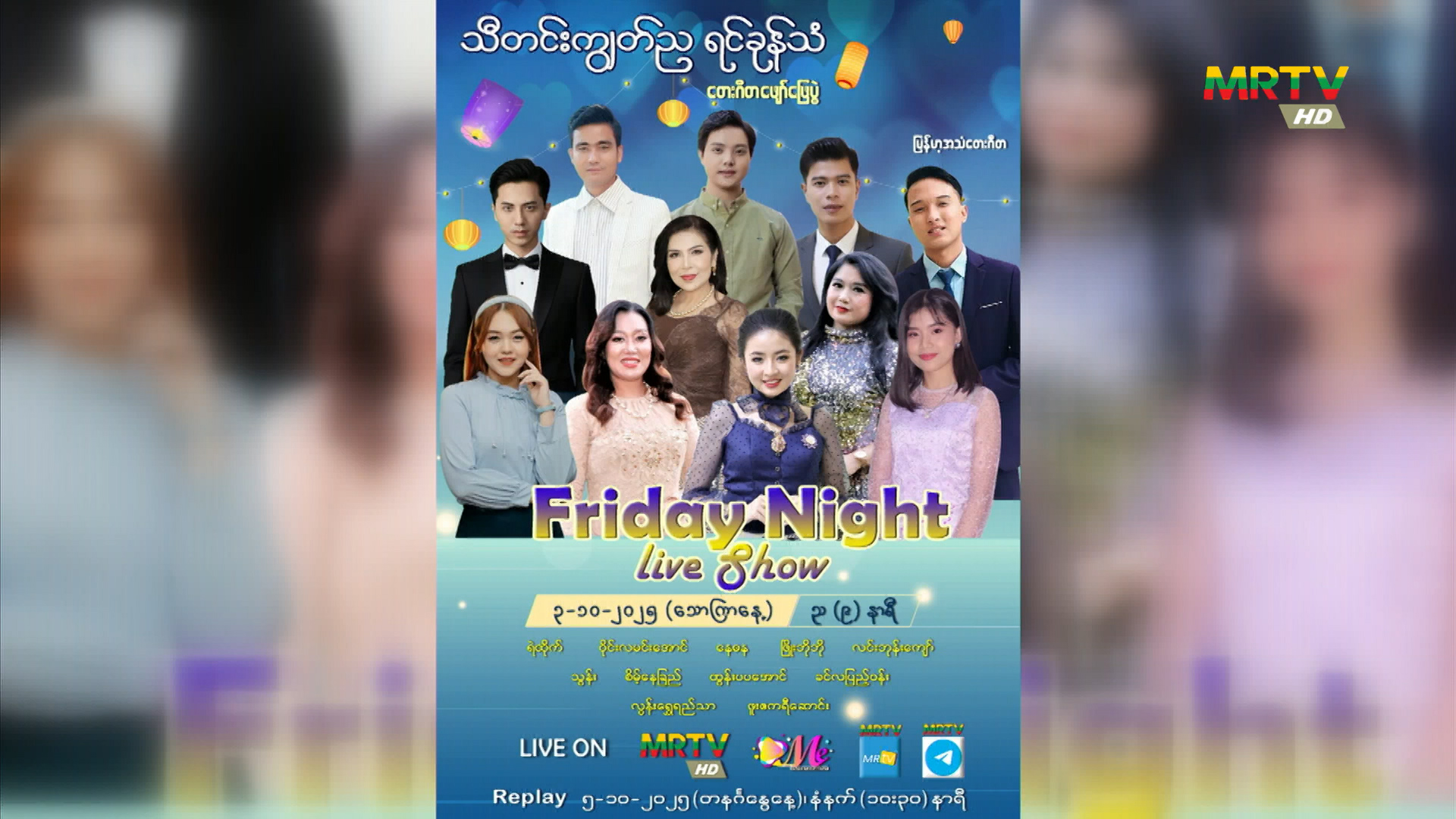 "သီတင်းကျွတ်ည ရင်ခုန်သံ" တေးဂီတဖျော်ဖြေပွဲ အစီအစဉ်ကို ယနေ့ည ၉ နာရီခန့်တွင် မြန်မာ့ရုပ်မြင်သံကြားမှ ထုတ်လွှင့်ပြသမည် Friday, October 03, 2025