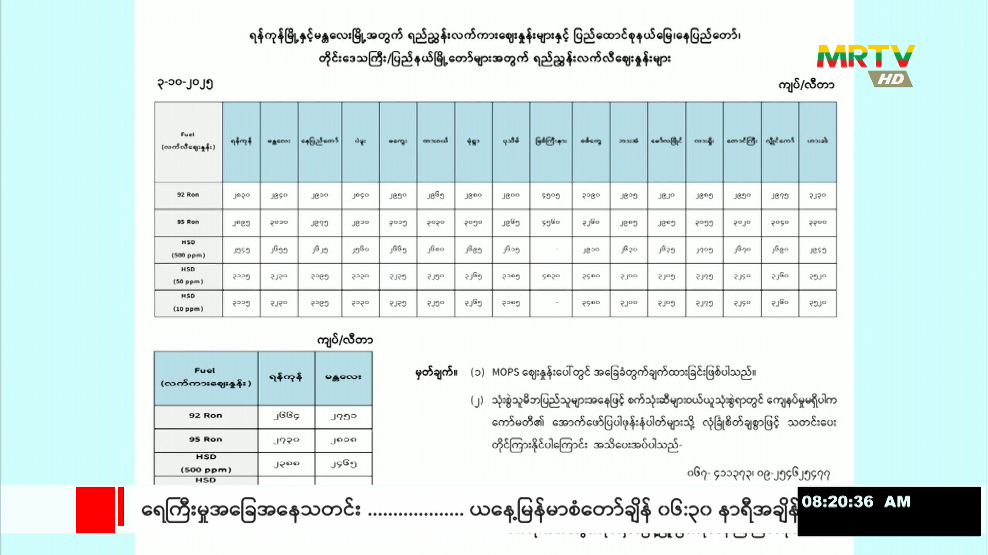 စက်သုံးဆီတင်သွင်း/ သိုလှောင်/ ဖြန့်ဖြူးခြင်း လုပ်ငန်းကြီးကြပ်ရေးကော်မတီမှ တိုင်းဒေသကြီးနှင့် ပြည်နယ်အလိုက် စက်သုံးဆီ ရည်ညွှန်းဈေးနှုန်းများအား အောက်တိုဘာလ (၃)ရက်နေ့တွင် ထုတ်ပြန်ကြေညာ Friday, October 03, 2025