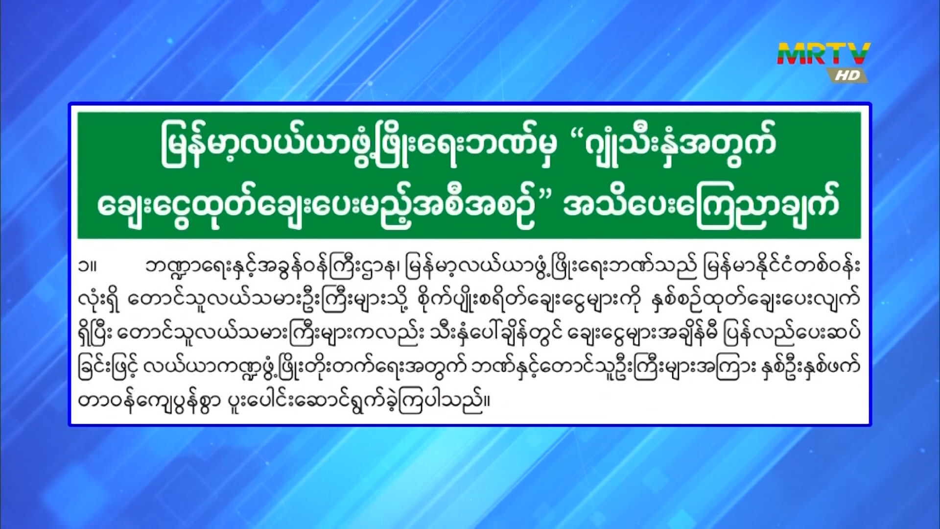 မြန်မာ့လယ်ယာဖွံ့ဖြိုးရေးဘဏ်မှ “ဂျုံသီးနှံအတွက် ချေးငွေထုတ်ချေး ပေးမည့်အစီအစဉ်”အသိပေးကြေညာချက် Friday, October 03, 2025