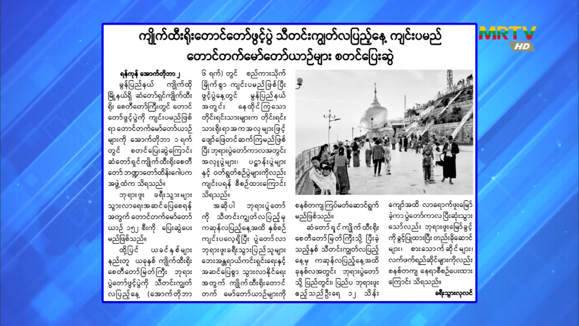 ကျိုက်ထီးရိုးတောင်တော်ဖွင့်ပွဲ သီတင်းကျွတ်လပြည့်နေ့ ကျင်းပမည်
