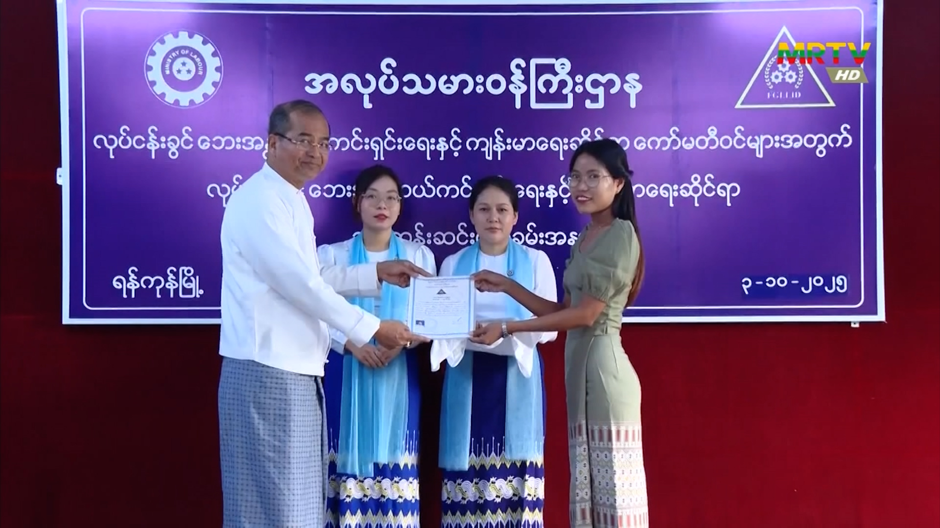 အလုပ်သမားဝန်ကြီးဌာန၊ ဒုတိယဝန်ကြီး ဦးဝင်းရှိန် ရန်ကုန်တိုင်းဒေသကြီး လှိုင်သာယာမြို့နယ်ရှိ အမျိုးသား လုပ်ငန်းခွင် ဘေးအန္တရာယ်ကင်းရှင်းရေးနှင့် ကျန်းမာရေးဆိုင်ရာ သင်တန်းအမှတ်စဉ် (၁၆/၂၀၂၅) သင်တန်းဆင်းပွဲသို့ တက်ရောက်၍ အထည်ချုပ်စက်ရုံများအား ကြည့်ရှုအားပေး Saturday, October 04, 2025