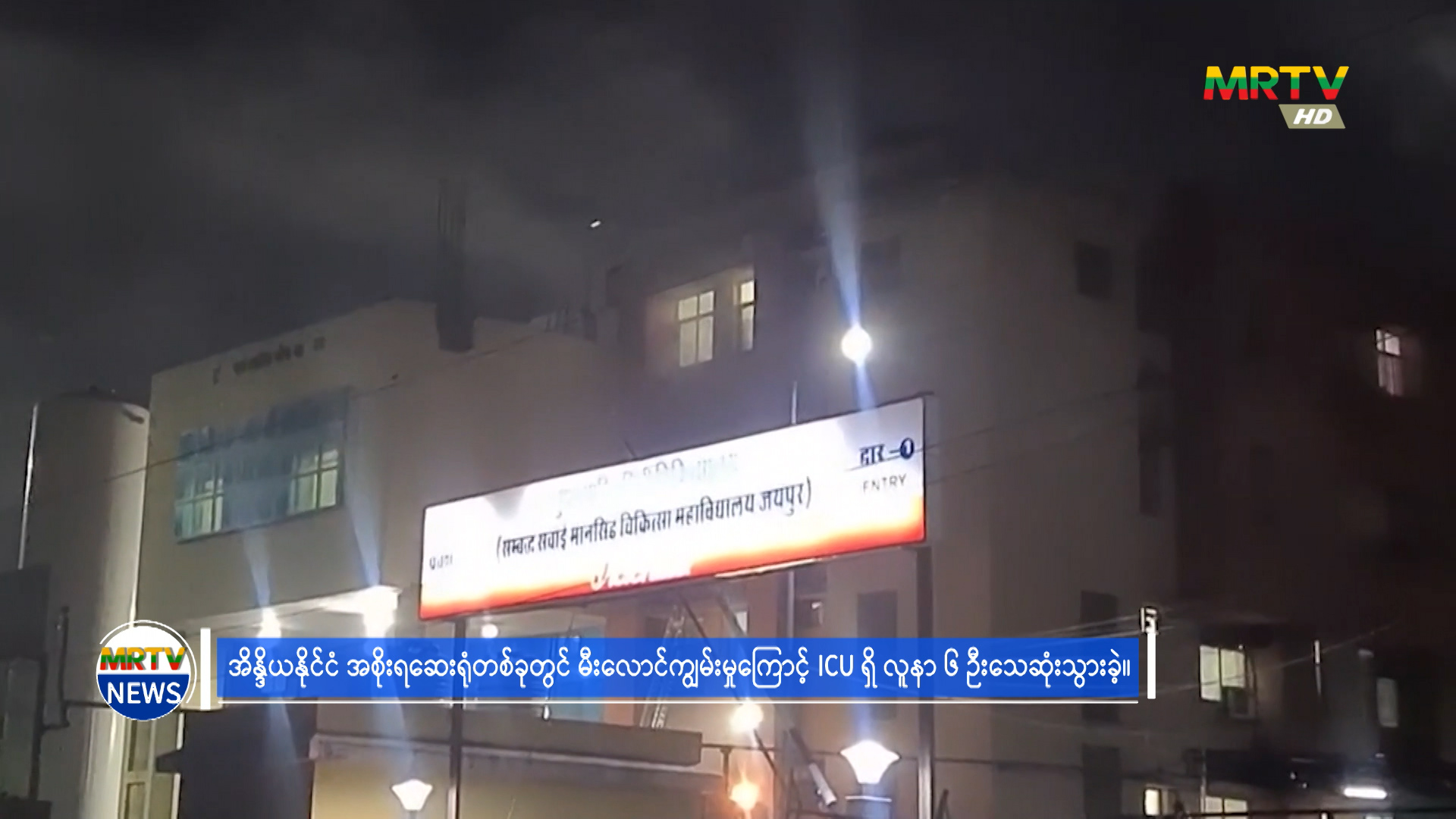 အိန္ဒိယနိုင်ငံ အစိုးရဆေးရုံတစ်ခုတွင် မီးလောင်ကျွမ်းမှုကြောင့် ICU ရှိ လူနာ (၆)ဦး သေဆုံး