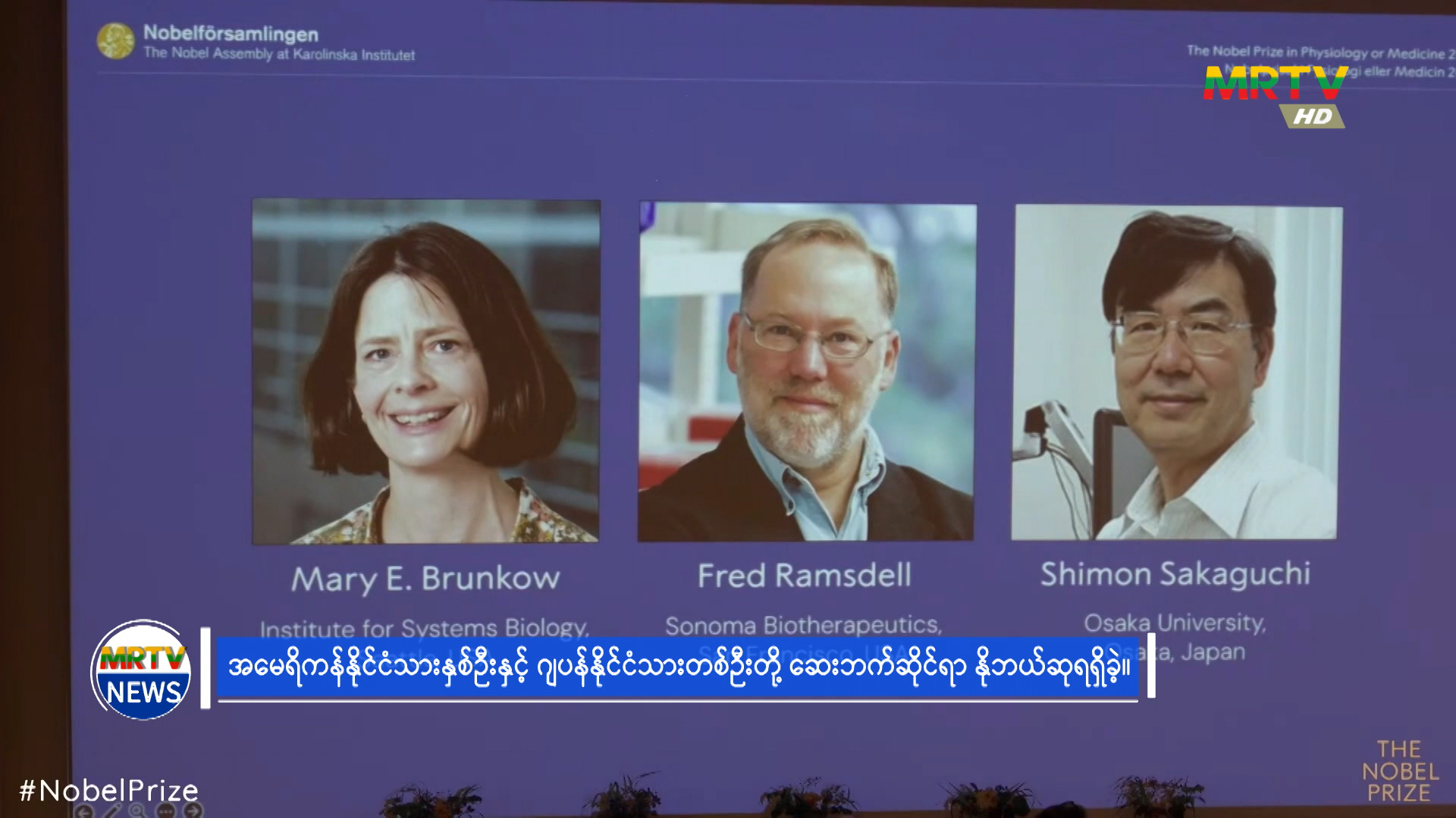 အမေရိကန်နိုင်ငံသားနှစ်ဦးနှင့် ဂျပန်နိုင်ငံသားတစ်ဦးတို့ ဆေးဘက်ဆိုင်ရာ နိုဘယ်လ်ဆုရရှိ