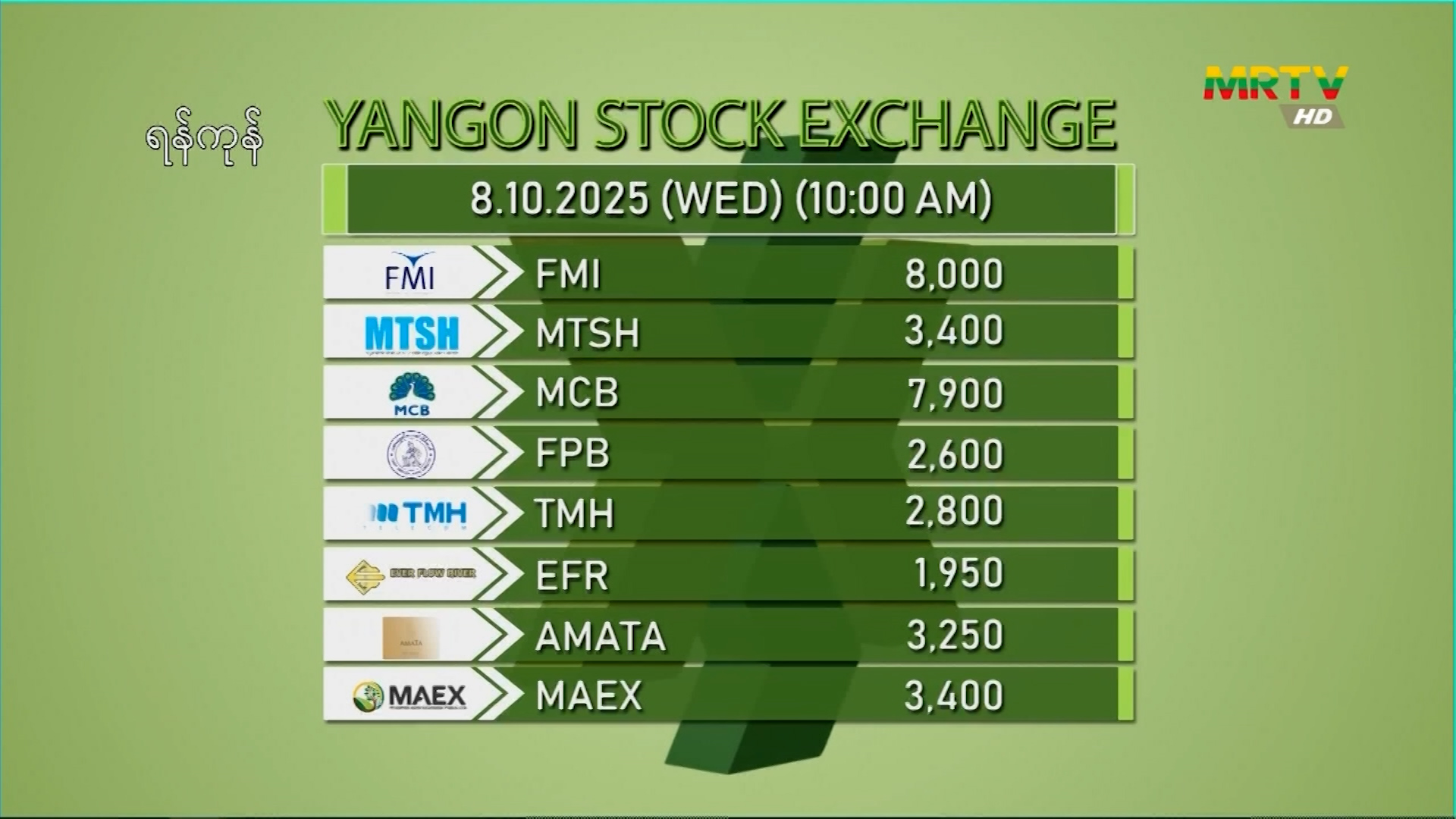 Yangon Stock Exchange ဈေးကွက် အခြေအနေ (၈-၁၀-၂၀၂၅)