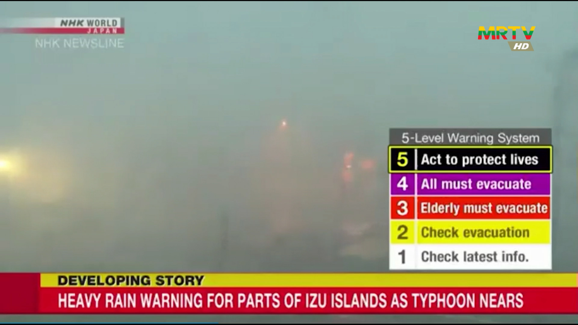 ဂျပန်နိုင်ငံ၊ Izu ကျွန်းစုတွင် အင်အားပြင်း တိုင်ဖွန်း Halong ဝင်ရောက်တိုက်ခတ်မှုကြောင့် အရေးပေါ်သတိပေးချက် ထုတ်ပြန်ထား Thursday, October 09, 2025