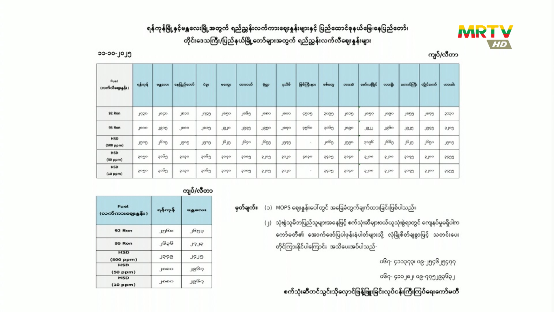 စက်သုံးဆီတင်သွင်း/ သိုလှောင်/ ဖြန့်ဖြူးခြင်းလုပ်ငန်း ကြီးကြပ်ရေးကော်မတီမှ တိုင်းဒေသကြီးနှင့် ပြည်နယ်အလိုက် စက်သုံးဆီ ရည်ညွှန်းဈေးနှုန်းများအား အောက်တိုဘာလ (၁၁)ရက်နေ့တွင် ထုတ်ပြန်ကြေညာ Saturday, October 11, 2025