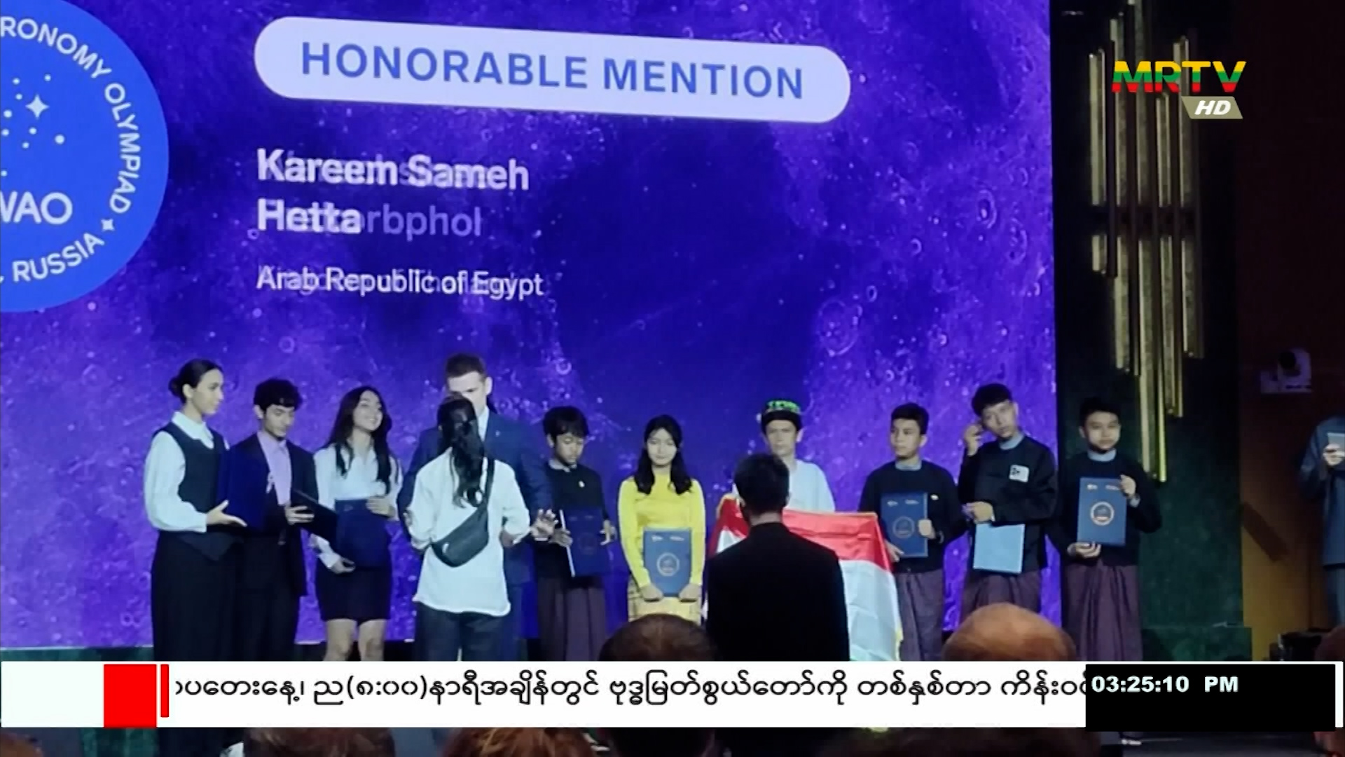 ရုရှားနိုင်ငံတွင် ကျင်းပသော World Astronomy Olympic ပြိုင်ပွဲတွင် ရန်ကုန်တိုင်းဒေသကြီး၊ လေ့ကျင့်ရေးအထက်တန်းကျောင်း(ကမာရွတ်)မှ ကျောင်းသား၊ ကျောင်းသူများ ၀င်ရောက်ယှဥ်ပြိုင်ခဲ့ရာ ဆုတံဆိပ်များရရှိ