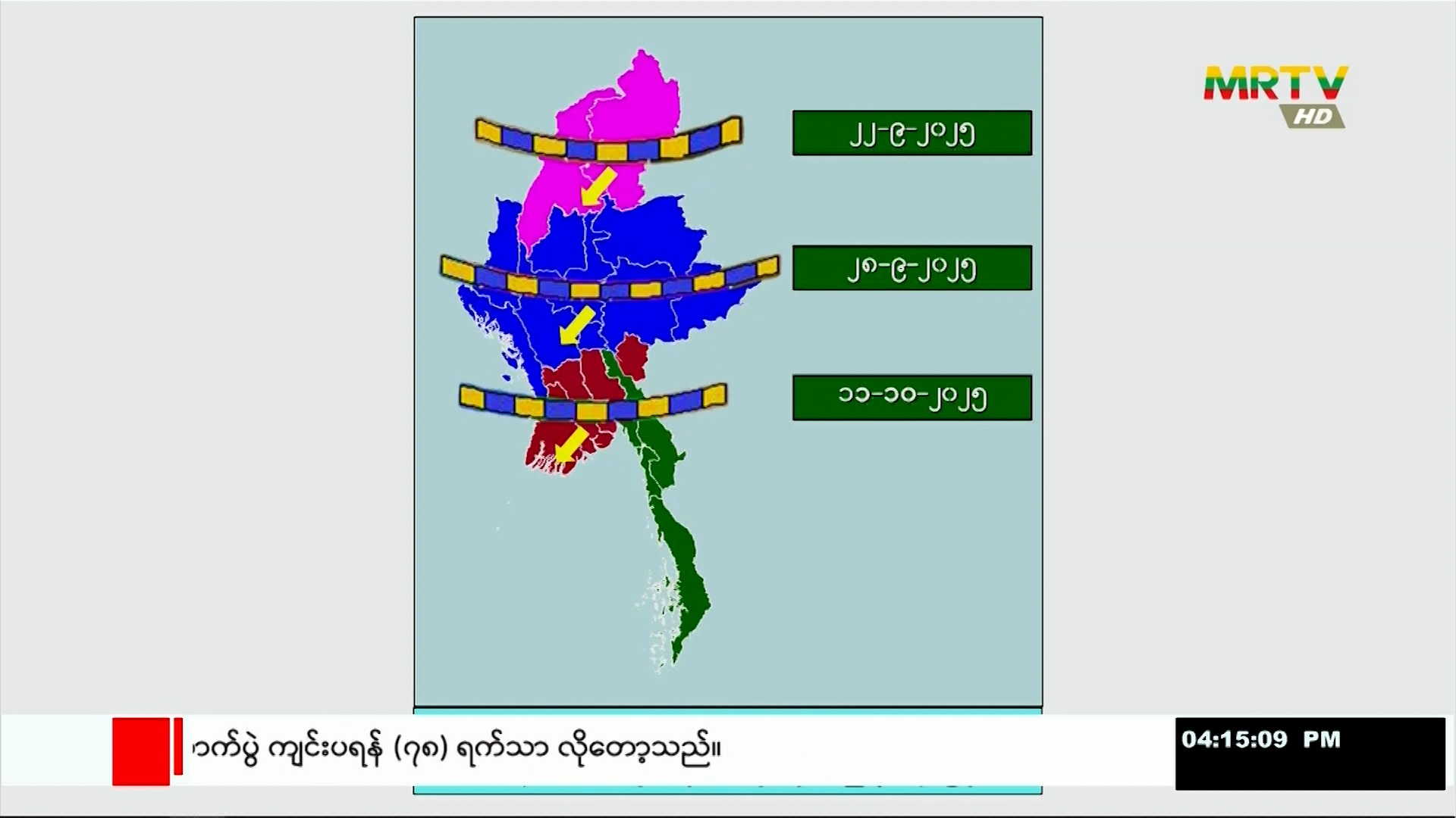 မိုးလေဝသနှင့် ဇလဗေဒညွှန်ကြားမှုဦးစီးဌာနမှ အနောက်တောင်မုတ်သုံလေ မြန်မာနိုင်ငံ မြစ်ဝကျွန်းပေါ်ဒေသများမှ ဆုတ်ခွာသည့်အခြေအနေ ထုတ်ပြန် Saturday, October 11, 2025