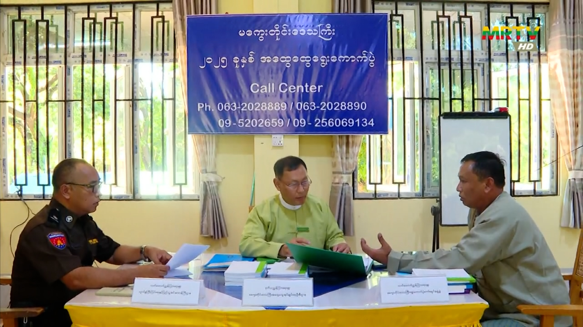 မကွေးတိုင်းဒေသကြီး ရွေးကောက်ပွဲကော်မရှင်အဖွဲ့ခွဲရုံး အပေါ်ထပ်တွင် မဲစာရင်းကိစ္စများ မေးမြန်းနိုင်ရန် Call Center ဖွင့်လှစ်ထားရှိ Monday, October 13, 2025