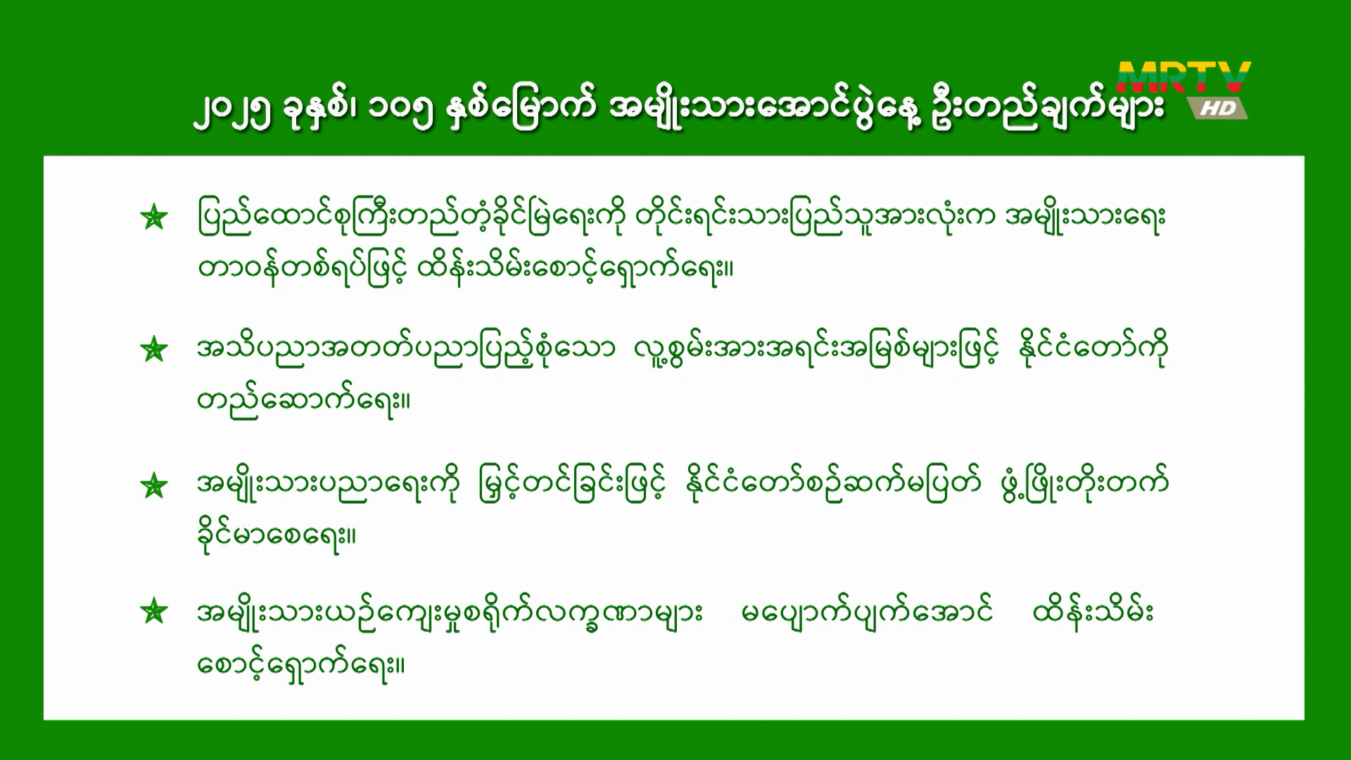 ၂၀၂၅ ခုနှစ်၊ (၁၀၅)နှစ်မြောက် အမျိုးသားအောင်ပွဲနေ့ ဦးတည်ချက်များ