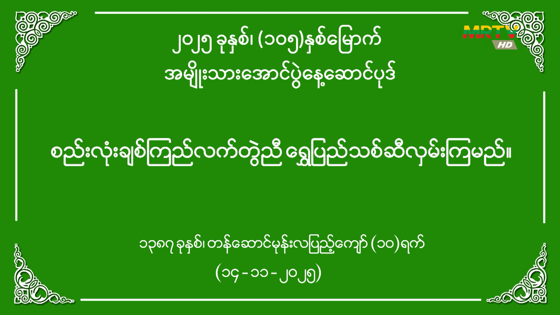 ရွေးကောက်တင်မြှောက်ခြင်းခံရသောသမ္မတ နိုင်ငံတော်လုံခြုံရေးနှင့် အေးချမ်းသာယာရေးကော်မရှင်ဥက္ကဋ္ဌ ဗိုလ်ချုပ်မှူးကြီး မင်းအောင်လှိုင်၏ ဂုဏ်ပြုအထိမ်းအမှတ်လက်ဆောင် ချီးမြှင့်ခြင်းအခမ်းအနား ကျင်းပ