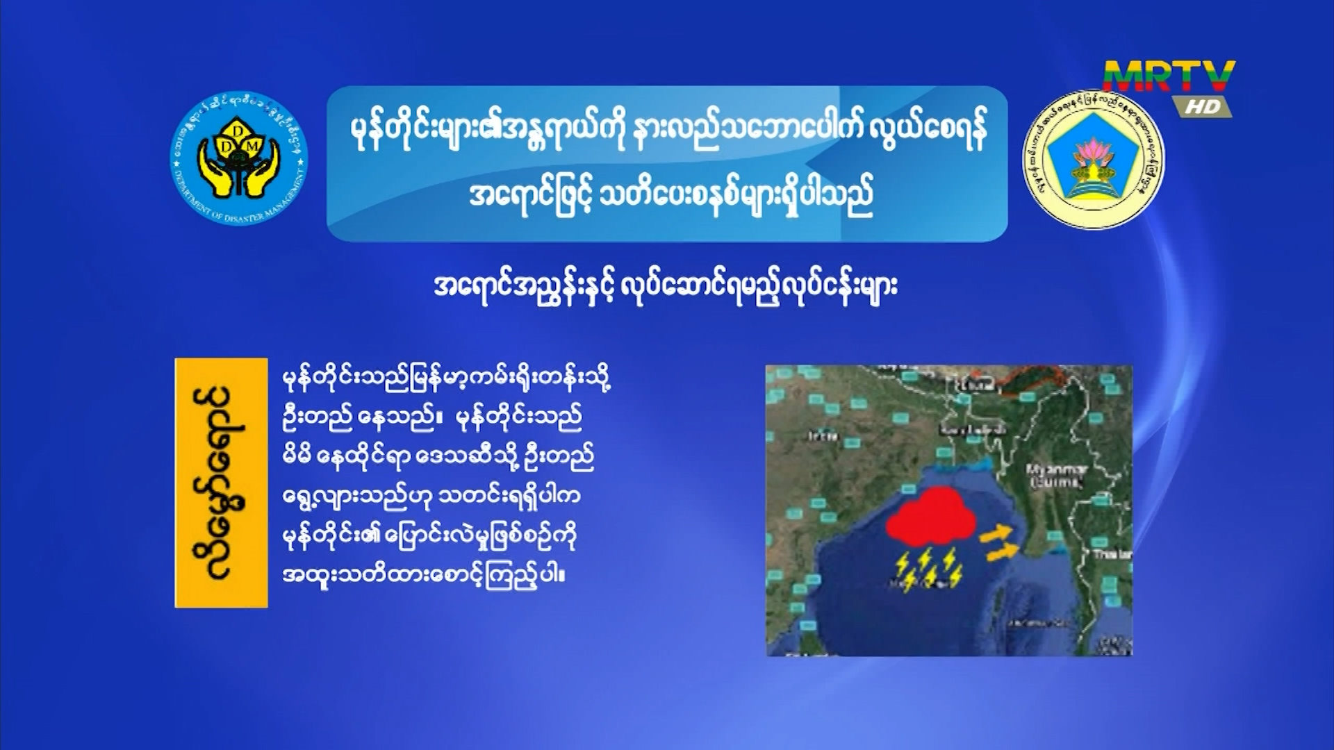 မုန်တိုင်းများ၏ အန္တရာယ်ကို နားလည်သဘောပေါက် လွယ်စေရန် အရောင်ဖြင့် သတိပေးစနစ်များရှိပါသည် Monday, December 01, 2025