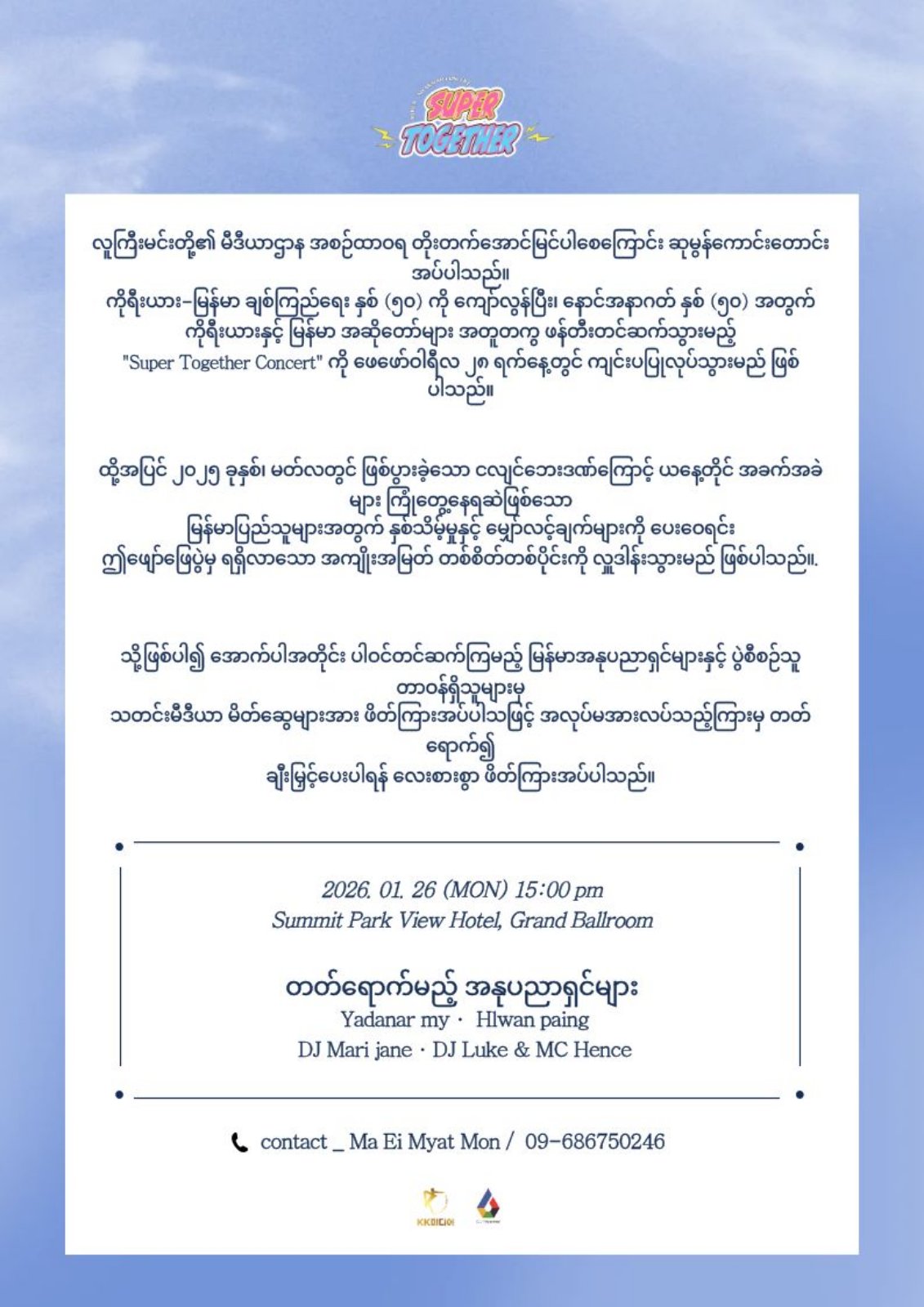 "Super Together Concert" မီဒီယာ မိတ်ဆက်ပွဲသို့ သတင်းမီဒီယာများ တက်ရောက်နိုင်