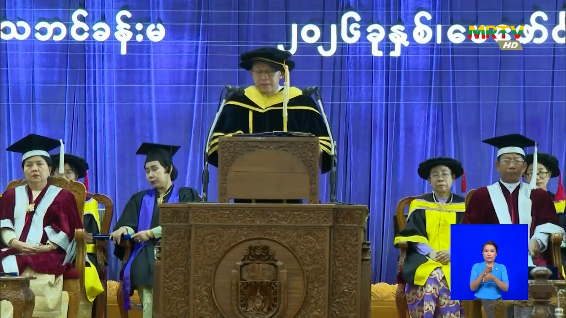 ပြည်ထောင်စုသမ္မတမြန်မာနိုင်ငံတော် ယာယီသမ္မတ နိုင်ငံတော်လုံခြုံရေးနှင့် အေးချမ်းသာယာရေးကော်မရှင် ဥက္ကဋ္ဌ ဗိုလ်ချုပ်မှူးကြီး မင်းအောင်လှိုင် အား ရန်ကုန်တက္ကသိုလ်မှ ဂုဏ်ထူးဆောင် ပြည်သူ့ရေးရာစီမံခန့်ခွဲမှု ပါရဂူဘွဲ့ Honorary Doctor of Public Administration (D.P.A Honoris Causa) အပ်နှင်း Thursday, February 05, 2026