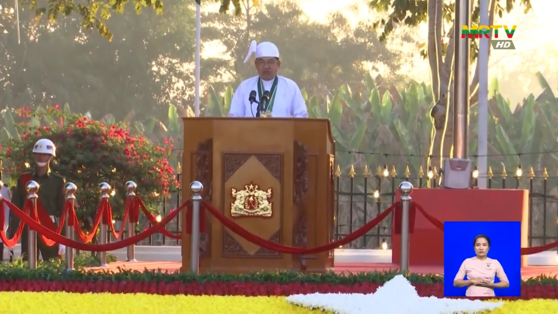 နိုင်ငံတော်လုံခြုံရေးနှင့် အေးချမ်းသာယာရေးကော်မရှင် အဖွဲ့ဝင်၊ နိုင်ငံတော်ဝန်ကြီးချုပ် ဇေယျကျော်ထင် သရေစည်သူ ဦးညိုစော (၇၉)နှစ်မြောက် ပြည်ထောင်စုနေ့ နိုင်ငံတော်အလံတင် အခမ်းအနားနှင့် နိုင်ငံတော်အလံ အလေးပြုပွဲ အခမ်းအနားသို့ တက်ရောက် Thursday, February 12, 2026