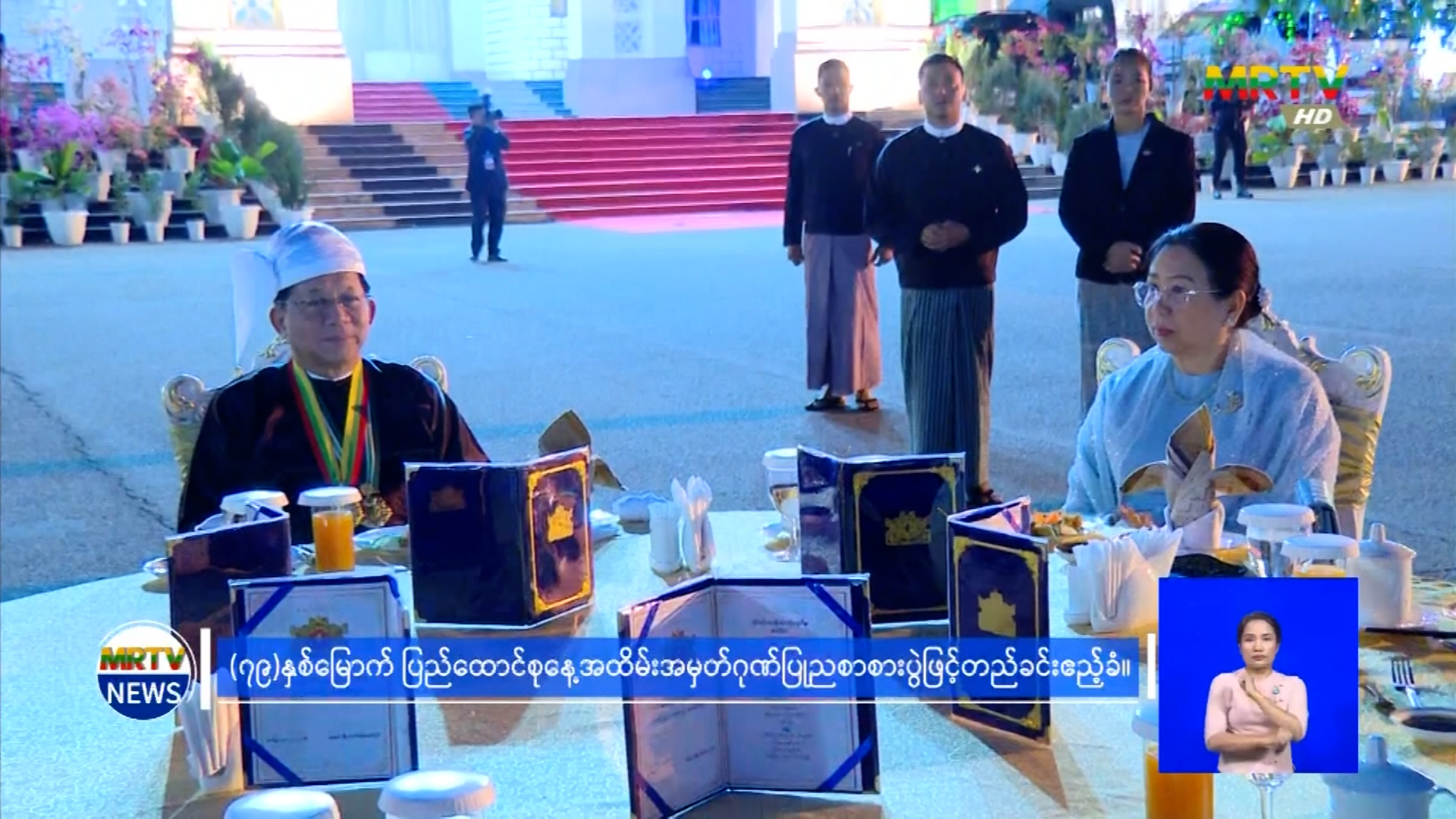 ပြည်ထောင်စုသမ္မတမြန်မာနိုင်ငံတော် ယာယီသမ္မတ နိုင်ငံတော်လုံခြုံရေးနှင့် အေးချမ်းသာယာရေးကော်မရှင် ဥက္ကဋ္ဌ ဗိုလ်ချုပ်မှူးကြီး သတိုးမဟာသရေစည်သူ သတိုးသီရိသုဓမ္မ မင်းအောင်လှိုင် နှင့်ဇနီး ဒေါ်ကြူကြူလှ တို့က (၇၉)နှစ်မြောက် ပြည်ထောင်စုနေ့ အထိမ်းအမှတ် ဂုဏ်ပြုညစာစားပွဲဖြင့် တည်ခင်းဧည့်ခံ Thursday, February 12, 2026