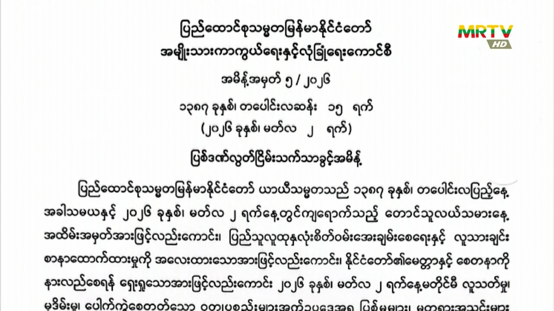 အမျိုးသားကာကွယ်ရေးနှင့် လုံခြုံရေးကောင်စီမှ အမိန့်အမှတ် (၅/၂၀၂၆)အား မတ်လ (၂)ရက်နေ့၊ ယနေ့ရက်စွဲဖြင့် ထုတ်ပြန် Monday, March 02, 2026