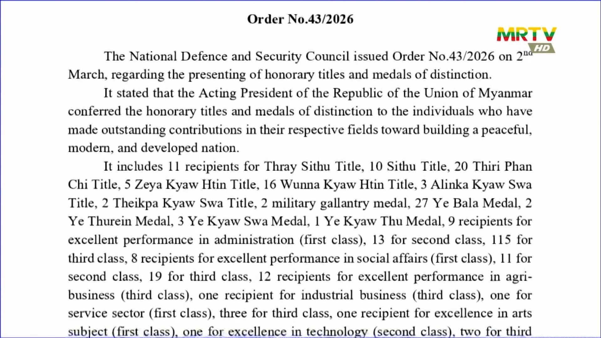Acting President awards honors to distinguished individuals
