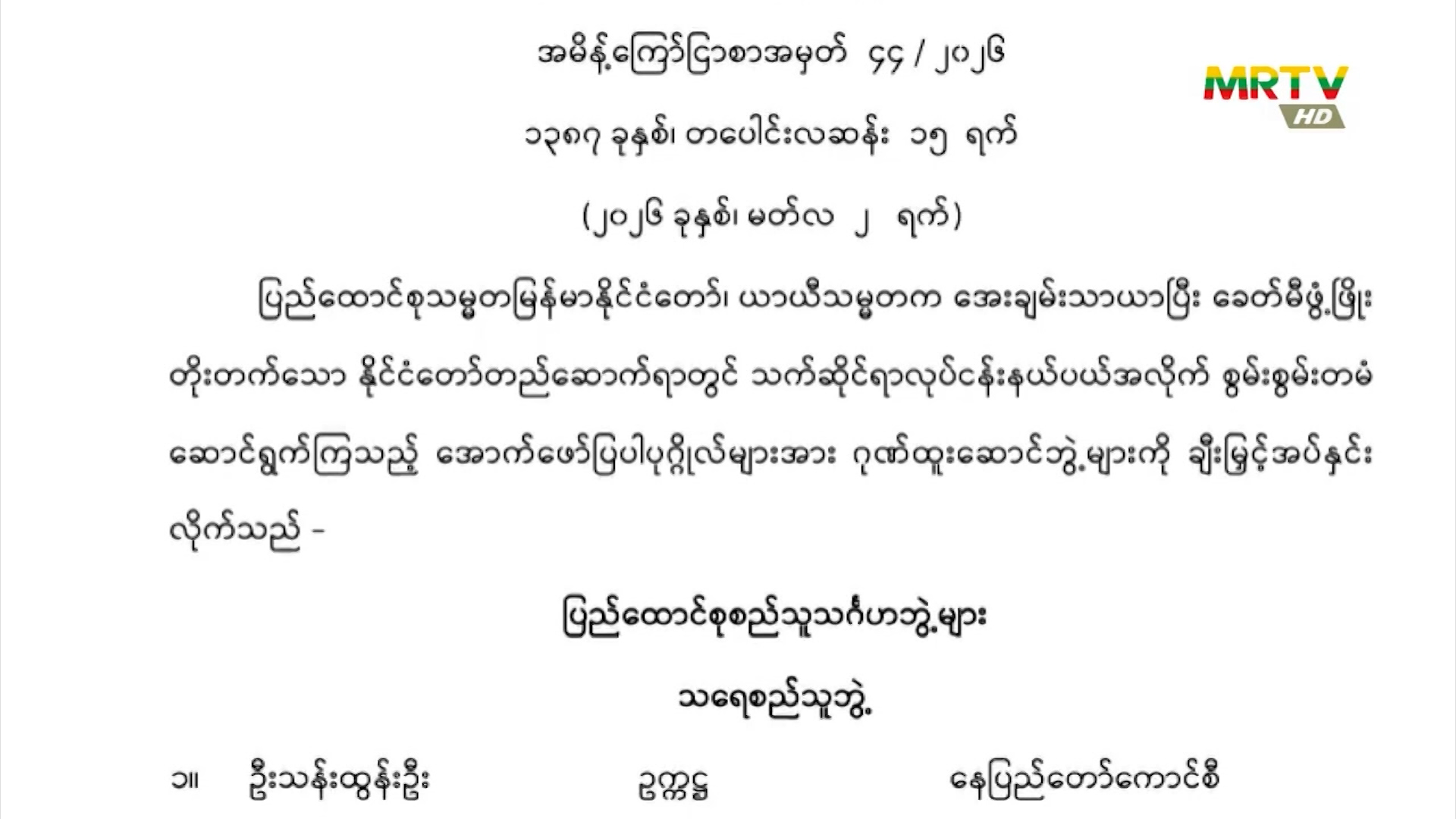 အမျိုးသားကာကွယ်ရေးနှင့် လုံခြုံရေးကောင်စီ သည် အမိန့်ကြော်ငြာစာအမှတ် (၄၄/၂၀၂၆) အား မတ်လ(၂)ရက် ယနေ့ရက်စွဲဖြင့်ထုတ်ပြန် Monday, March 02, 2026