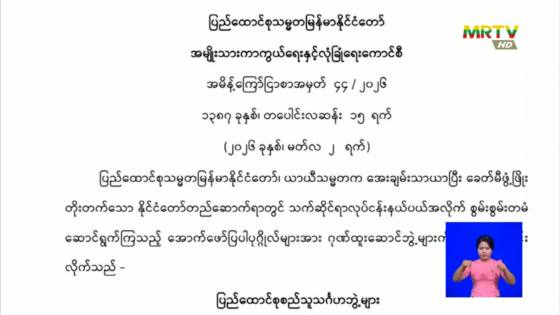 ပြည်ထောင်စုသမ္မတမြန်မာနိုင်ငံတော် အမျိုးသားကာကွယ်ရေးနှင့် လုံခြုံရေးကောင်စီသည် အမိန့်ကြော်ငြာစာအမှတ် (၄၄/၂၀၂၆) အား မတ်လ(၂)ရက် ယနေ့ရက်စွဲဖြင့်ထုတ်ပြန်
