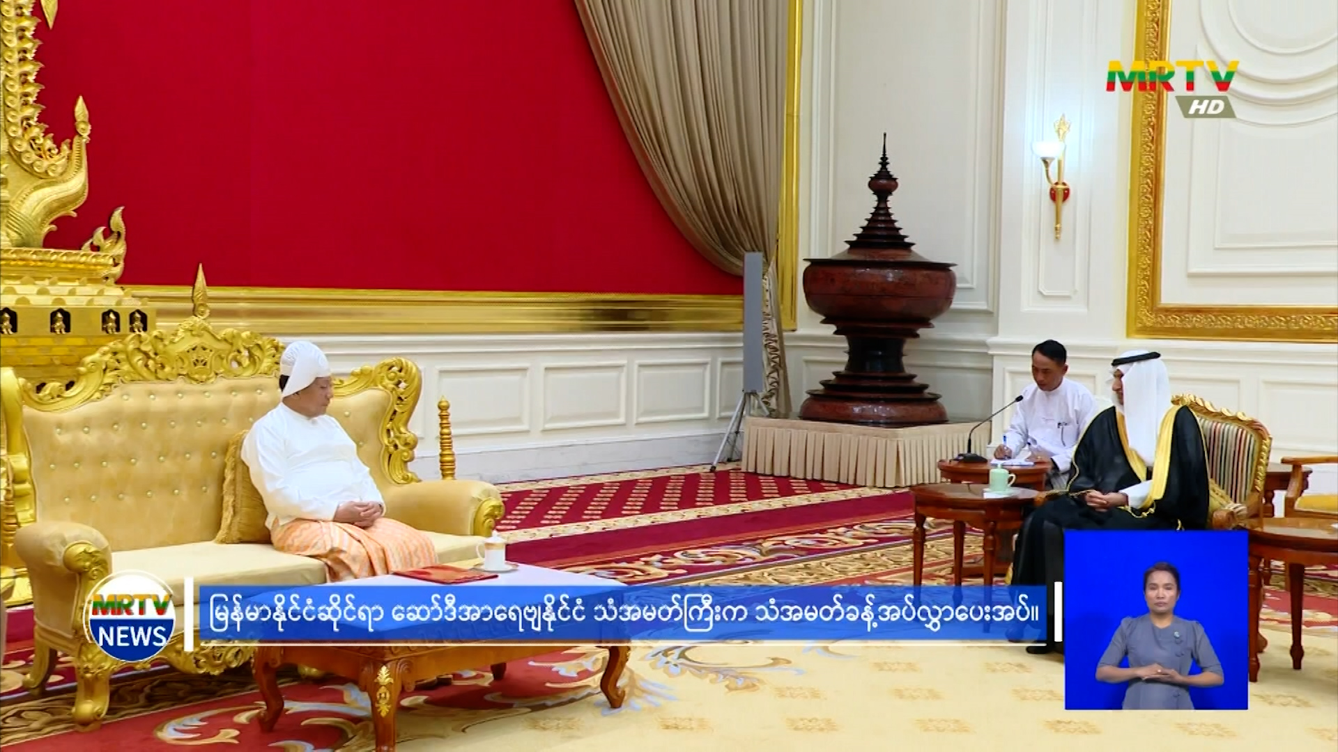 ပြည်ထောင်စုသမ္မတမြန်မာနိုင်ငံတော် ယာယီသမ္မတ နိုင်ငံတော်လုံခြုံရေးနှင့် အေးချမ်းသာယာရေးကော်မရှင် ဥက္ကဋ္ဌ ဗိုလ်ချုပ်မှူးကြီး မင်းအောင်လှိုင် ထံ မြန်မာနိုင်ငံဆိုင်ရာ ဆော်ဒီအာရေဗျနိုင်ငံ သံအမတ်ကြီး က သံအမတ်ခန့်အပ်လွှာ ပေးအပ်