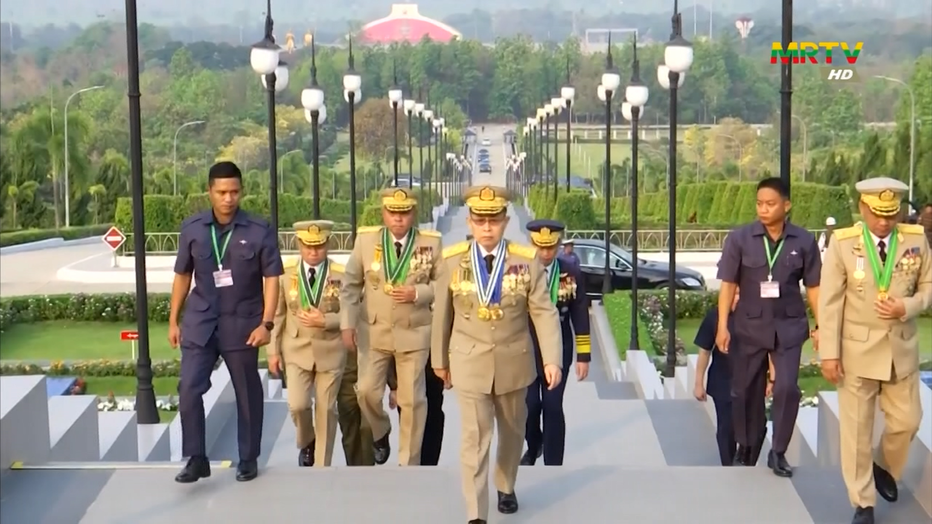 နိုင်ငံတော်လုံခြုံရေးနှင့် အေးချမ်းသာယာရေးကော်မရှင် ဒုတိယဥက္ကဋ္ဌ၊ ဒုတိယတပ်မတော်ကာကွယ်ရေးဦးစီးချုပ် ဒုတိယဗိုလ်ချုပ်မှူးကြီး သီရိပျံချီ မဟာသရေစည်သူ စိုးဝင်း နှင့် တပ်မတော်အရာရှိကြီးများ သူရဲကောင်းဗိမာန်(နေပြည်တော်) ၌ ဂုဏ်ပြုပန်းခြင်းချ အလေးပြု Friday, March 27, 2026