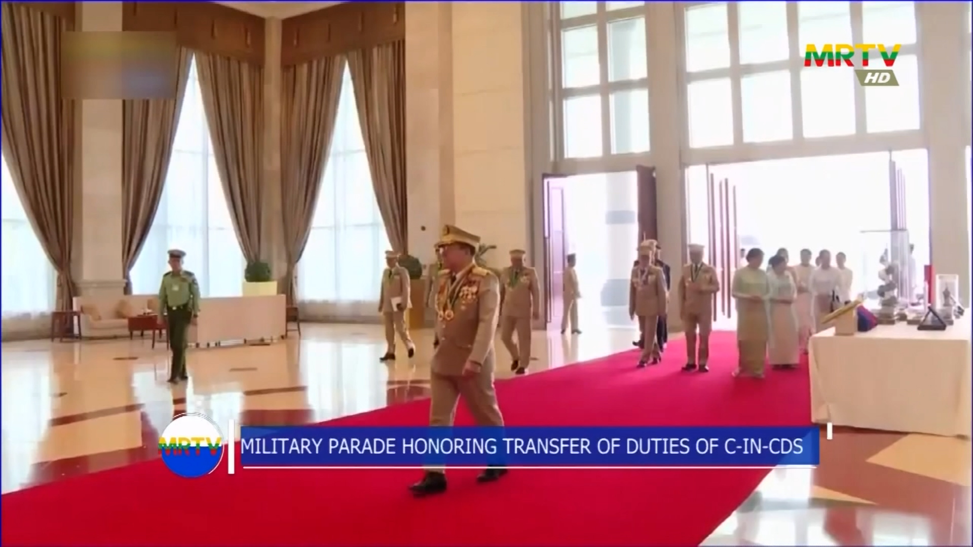 ရွေးကောက်တင်မြှောက်ခြင်းခံရသောသမ္မတ နိုင်ငံတော်လုံခြုံရေးနှင့် အေးချမ်းသာယာရေးကော်မရှင်ဥက္ကဋ္ဌ ဗိုလ်ချုပ်မှူးကြီး မင်းအောင်လှိုင်၏ ဂုဏ်ပြုအထိမ်းအမှတ်လက်ဆောင် ချီးမြှင့်ခြင်းအခမ်းအနား ကျင်းပ