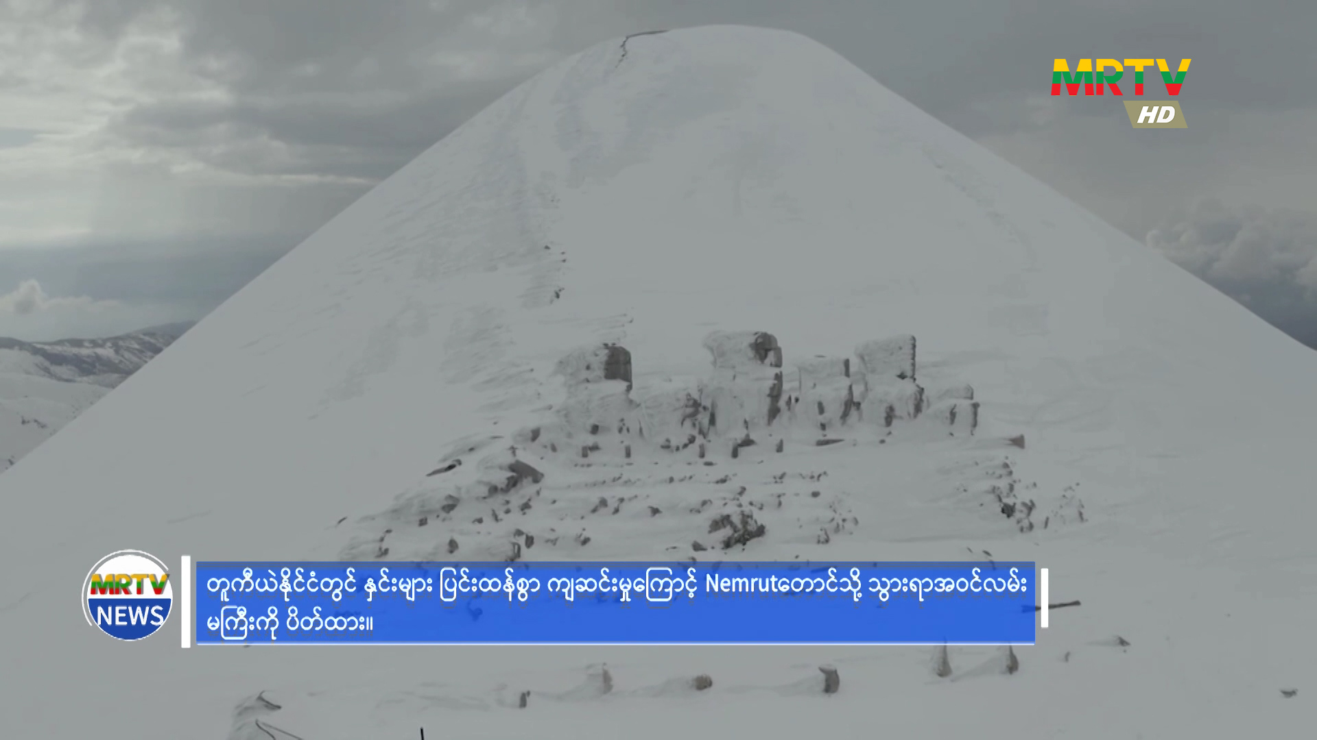 တူကီယဲနိုင်ငံတွင် နှင်းများ ပြင်းထန်စွာကျဆင်းမှုကြောင့် Nemrut တောင်သို့သွားရာ အဝင်လမ်းမကြီးကို ပိတ်ထား