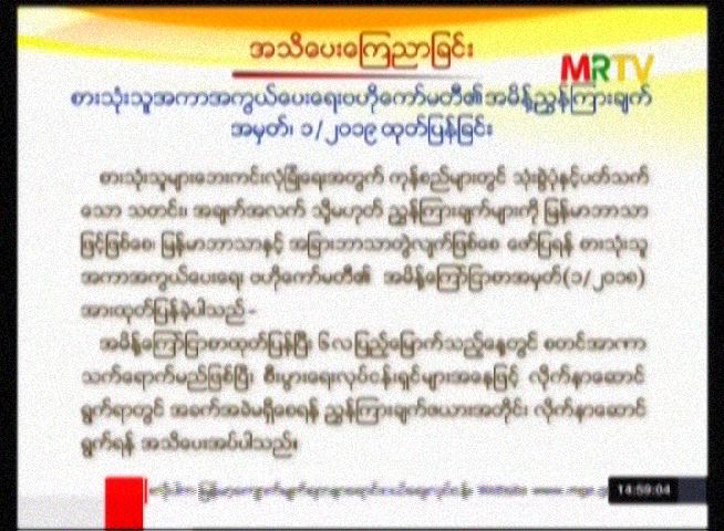 အသိပေးကြေညာခြင်း စာသုံးသူအကာအကွယ်ပေးရေးဗဟိုကော်မတီ၏ အမိန့်ညွှန်ကြားချက် အမှတ်၊ ၁/ ၂၀၁၉ ထုတ်ပြန်ခြင်း Thursday, February 07, 2019 Thursday, February 07, 2019