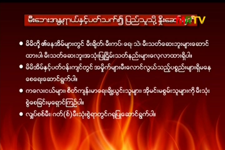မီးဘေးအန္တရာယ်နှင့်ပတ်သက်၍ ပြည်သူသို့နှိုးဆော်ချက်