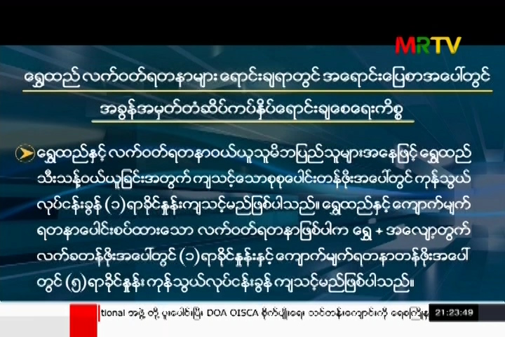 ရွှေထည်လက်ဝတ်ရတနာများရောင်းချရာတွင် အရောင်းပြေစာအပေါ်တွင် အခွန်အမှတ်တံဆိပ်ကပ်နှိပ် ရောင်းချစေရေးကိစ္စ Monday, March 04, 2019 Tax Monday, March 04, 2019