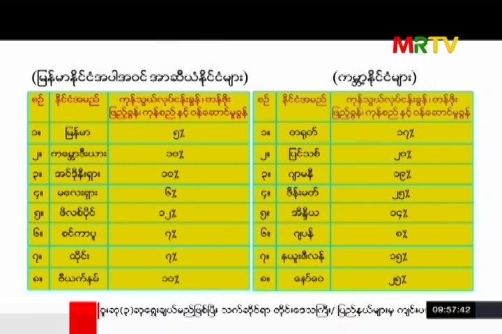 အာဆီယံနိုင်ငံများနှင့် ကမ္ဘာ့နိုင်ငံများမှ သွယ်ဝိုက်ခွန်ကောက်ခံသည့်နှုန်းများကို အသိပေးတင်ပြခြင်း Sunday, March 10, 2019 Tax Sunday, March 10, 2019