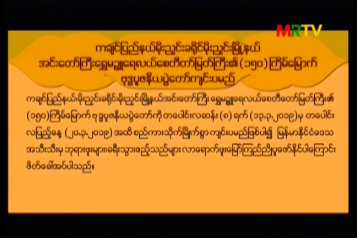 အင်းတော်ကြီးရွှေမြဉ္ဇူရေလယ်စေတီတော်မြတ်ကြီး၏ (၁၅၀)ကြိမ်မြောက် ဗုဒ္ဓပူဇနိယပွဲတော်ကျင်းပမည် Monday, March 11, 2019 Monday, March 11, 2019