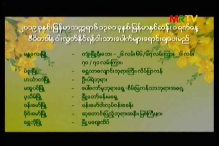 ၂၀၁၉ ခုနှစ်၊ မြန်မာသက္ကရာဇ် ၁၃၈၁ ခုနှစ်၊ မြန်မာနှစ်ဆန်း ၁ ရက်နေ့ ဇီဝိတဒါနငါးလွှတ်နိုင်ရန် ငါးသားပေါက်များ ရောင်းချပေးမည် Monday, April 08, 2019 Monday, April 08, 2019