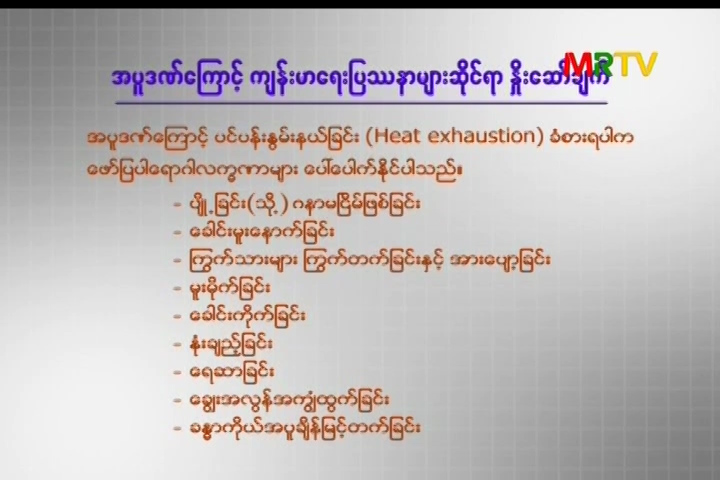 အပူဒဏ်ကြောင့် ကျန်းမာရေးပြဿနာများဆိုင်ရာ နှိုးဆော်ချက်