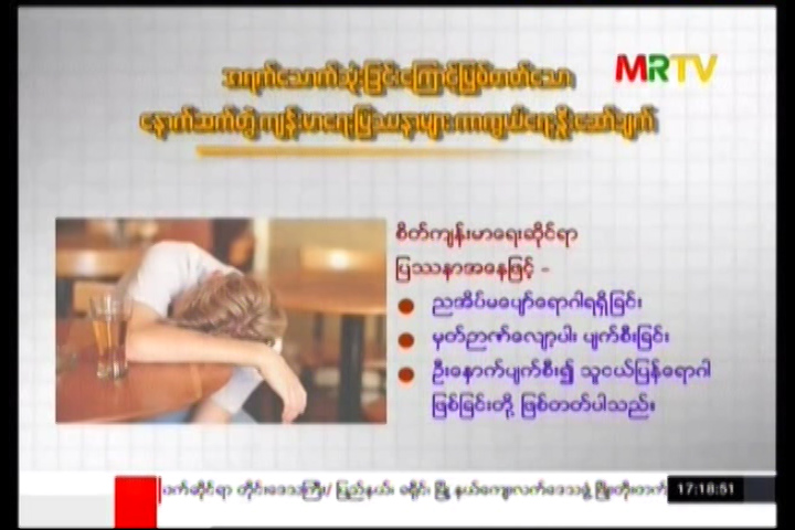 အရက်သောက်သုံးခြင်းကြောင့်ဖြစ်တတ်သော နောက်ဆက်တွဲကျန်းမာရေးပြဿနာများ ကာကွယ်ရေးနှိုးဆော်ချက် Monday, May 27, 2019 Monday, May 27, 2019