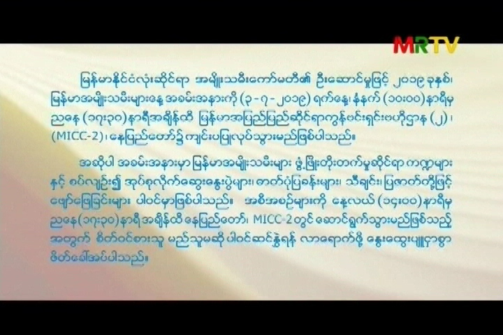 ၂၀၁၉ ခုနှစ်၊ မြန်မာအမျိုးသမီးများနေ့အခမ်းအနားကို ( ၃.၇.၂၀၁၉ )ရက်နေ့တွင် ( MICC-2 ) နေပြည်တော်၌ ကျင်းပပြုလုပ်သွားမည် Monday, July 01, 2019 Monday, July 01, 2019