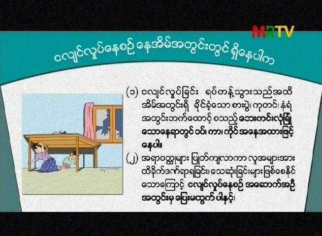 ငလျင်လှုပ်နေစဉ် နေအိမ်အတွင်းတွင် ရှိနေပါက