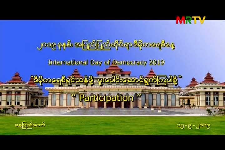 ၂၀၁၉ ခုနှစ်၊ အပြည်ပြည်ဆိုင်ရာ ဒီမိုကရေစီနေ့ ၁၅-၉-၂၀၁၉ ( နေပြည်တော် ) Monday, September 16, 2019 Monday, September 16, 2019