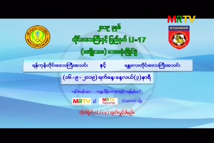 ၂၀၁၉ ခုနှစ် တိုင်းဒေသကြီးနှင့်ပြည်နယ် U-17 (အမျိုးသား)ဘောလုံးပြိုင်ပွဲ Monday, September 16, 2019 Monday, September 16, 2019