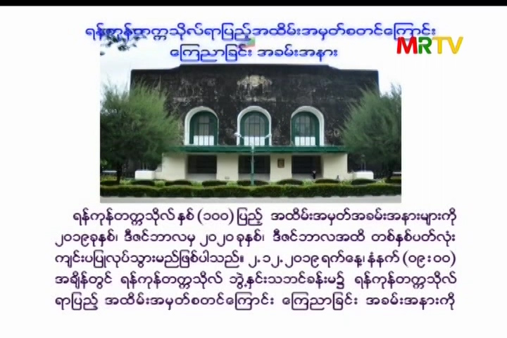 ရန်ကုန်တက္ကသိုလ် ရာပြည့် အထိမ်းအမှတ် စတင်ကြောင်း ကြေညာခြင်း အခမ်းအနားကျင်းပမည် Sunday, December 01, 2019 Sunday, December 01, 2019