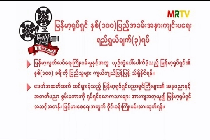 မြန်မာ့ရုပ်ရှင်နှစ် (၁၀၀)ပြည့် အခမ်းအနားကျင်းပရေး ရည်ရွယ်ချက် (၃)ရပ် Friday, February 14, 2020 Friday, February 14, 2020
