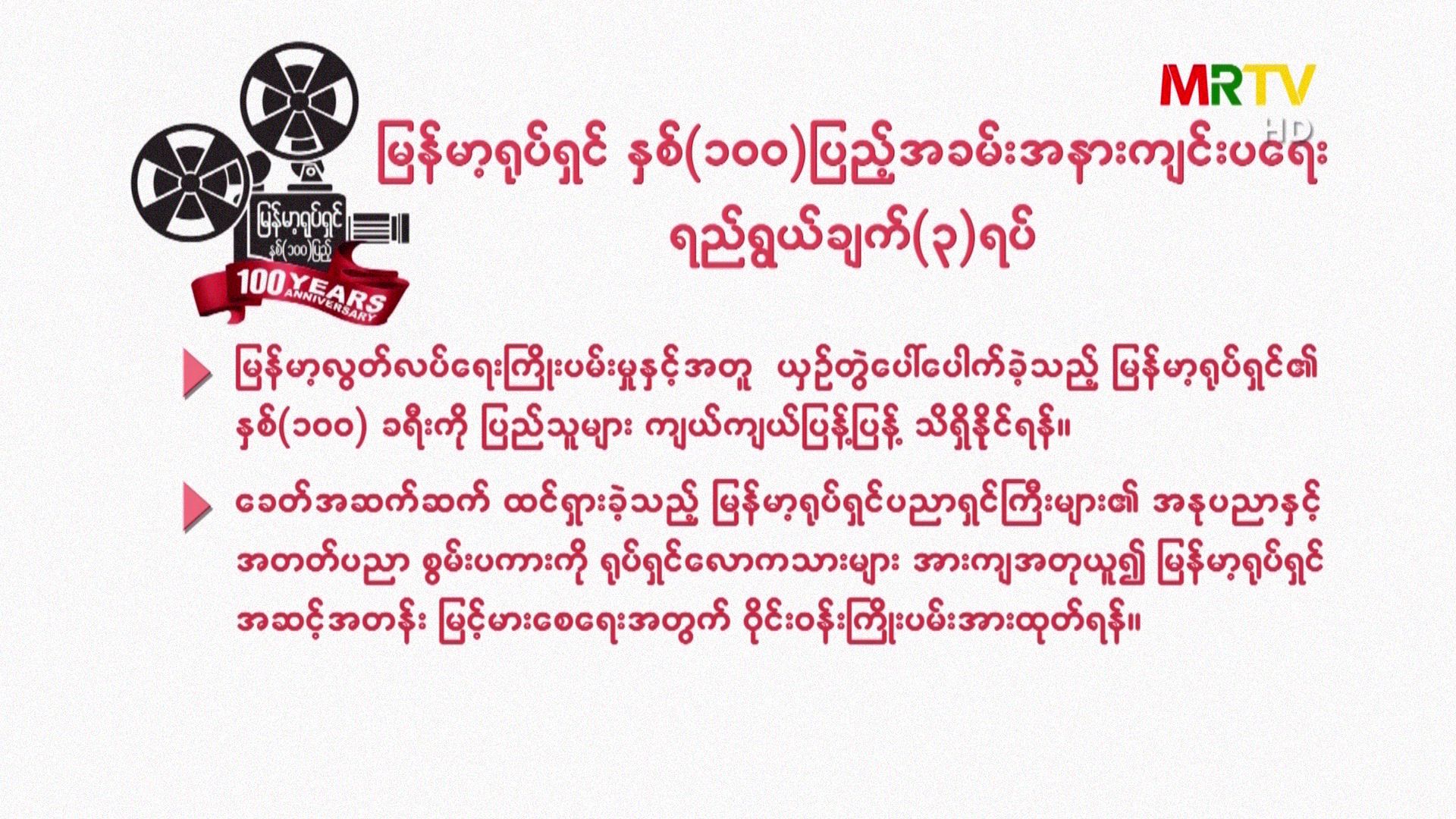 မြန်မာ့ရုပ်ရှင် နှစ်(၁၀၀)ပြည့် အခမ်းအနားကျင်းပရေး ရည်ရွယ်ချက်(၃)ရပ် Tuesday, March 17, 2020 Tuesday, March 17, 2020