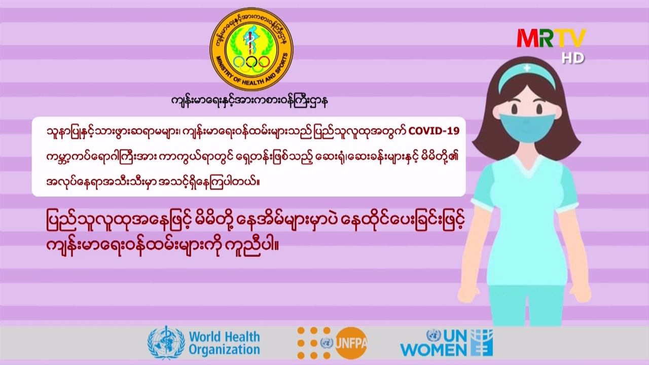 ပြည်သူလူထုအနေဖြင့် မိမိတို့နေအိမ်များမှာပဲ နေထိုင်ပေးခြင်းဖြင့် ကျန်းမာရေး၀န်ထမ်းများကို ကူညီပါ Tuesday, April 21, 2020 Tuesday, April 21, 2020